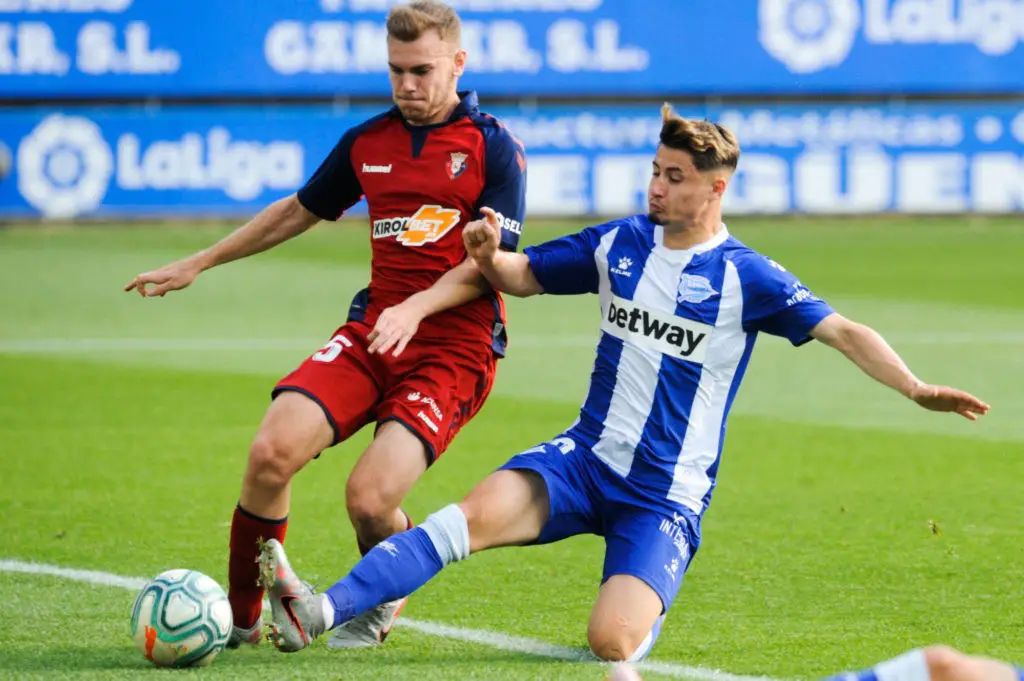 Partido de La Liga Santander disputado entre Alavés y Osasuna. En la imagen, Lato y Borja Sainz. League Santander match payed between Alavés y Osasuna. In this picture, Lato and Borja Sainz. Photo by Icon Sport - Stade de Mendizorroza - Vitoria- Gasteiz (Espagne)