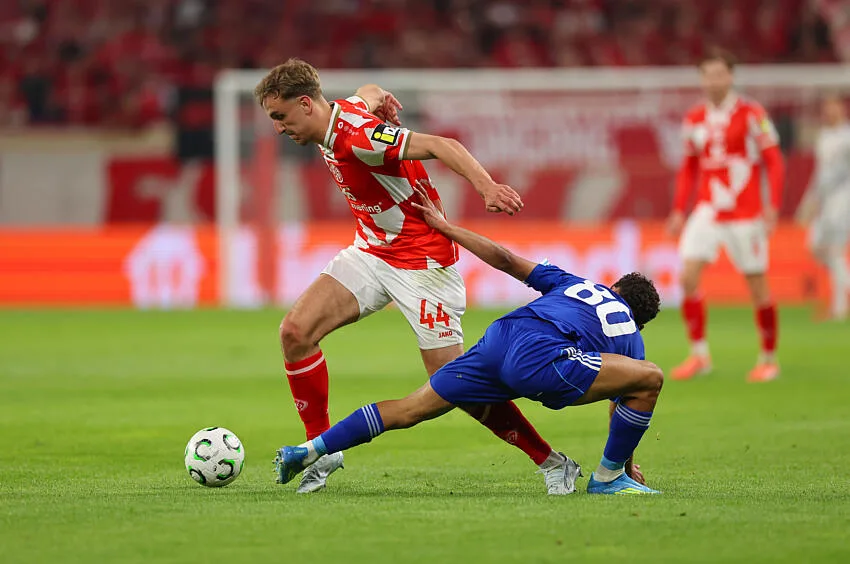 Un pressing asphyxiant et une Mewa Arena en ébullition : Mayence a mis un genou à terre pour Strasbourg dès le coup d’envoi de ce quart aller de Ligue Conférence. Les Alsaciens, étouffés par l’intensité allemande, encaissaient deux coups de massue en onze minutes – une transition conclue par Sano (11e) et une volée magistrale de Posch sur corner (19e). Un scénario à sens unique qui place le Racing dos au mur avant la Meinau.