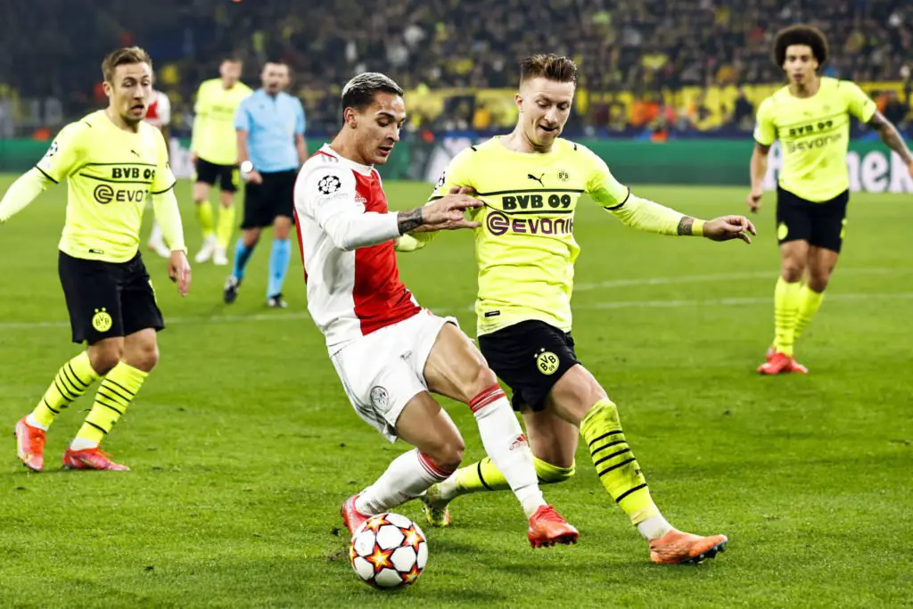 La pépite brésilienne, Antony, n’en finit plus d’impressionner. Il a à nouveau été l’auteur d’un excellent match dans la victoire de son équipe (1-3) face au Borussia Dortmund hier soir en Ligue des Champions. L’attaquant de l’Ajax a notamment délivré deux passes décisives. Le joueur de 21 ans, estimé à 25 millions d’euros par Transfermarkt, serait sur les tablettes de Liverpool selon l’Express. En effet, les Reds ne parviennent toujours pas à un accord avec leur star, Mohamed Salah, qui réclame un salaire de plus 465 000 € par semaine. Un montant qui bouleverserait tout le modèle économique des dirigeants anglais, ce qu’ils ne souhaitent pas. Cela pourrait causer des complications dans les négociations avec Salah et son entourage, selon le quotidien anglais.