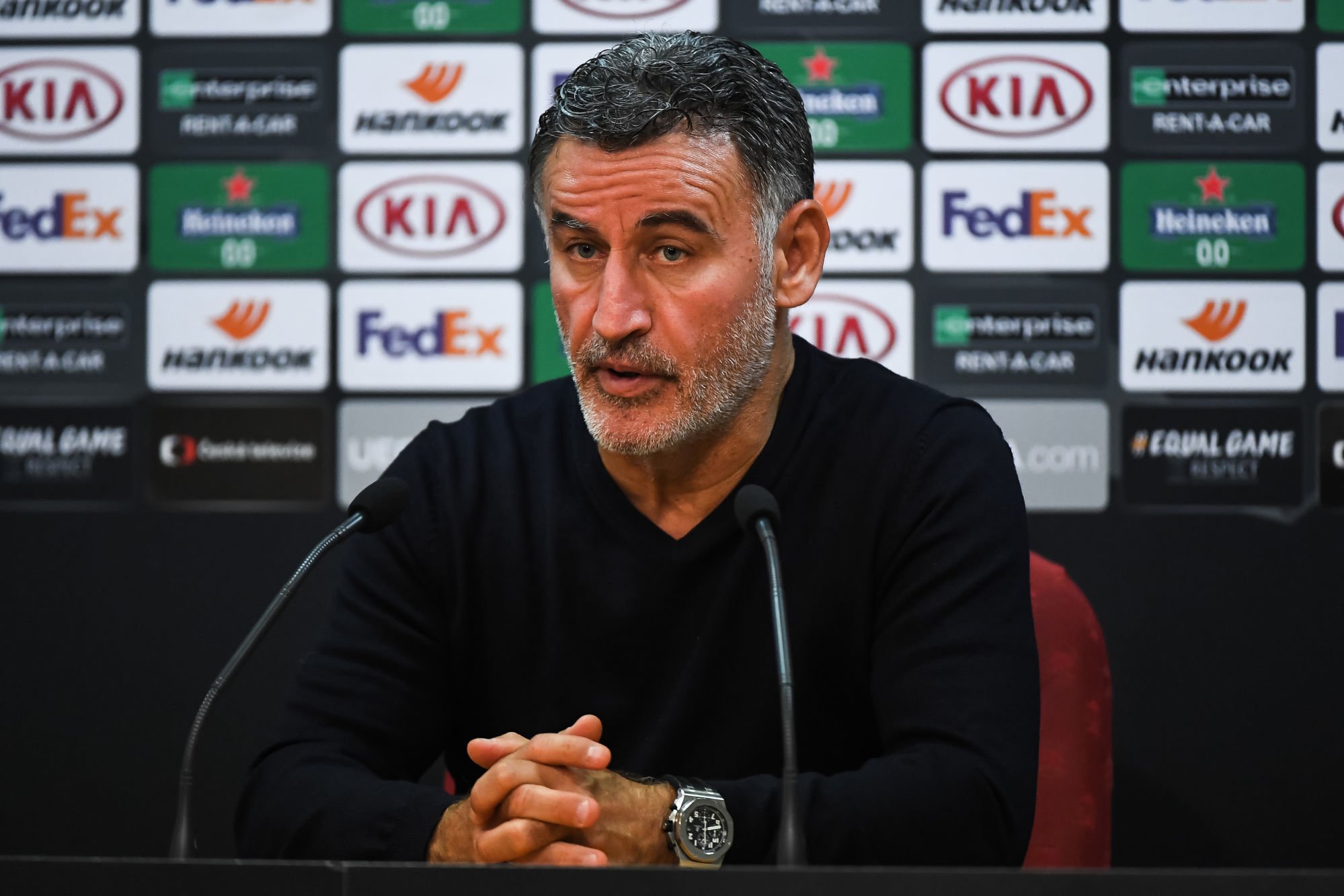 « La qualification ? Je pense qu’il nous faudra au moins une victoire. Au prochain match, on va recevoir le Milan AC qui va être un peu énervé quand même. Il faudra faire au moins une victoire pour se qualifier. On est en tête du groupe, on a une bonne différence de buts, on est sur la confiance. Il faut être sur la confiance et non pas sur le relâchement. On va redonner quelques coups de tournevis pendant le voyage pour se préparer pour le match de Brest qui arrive rapidement. »
