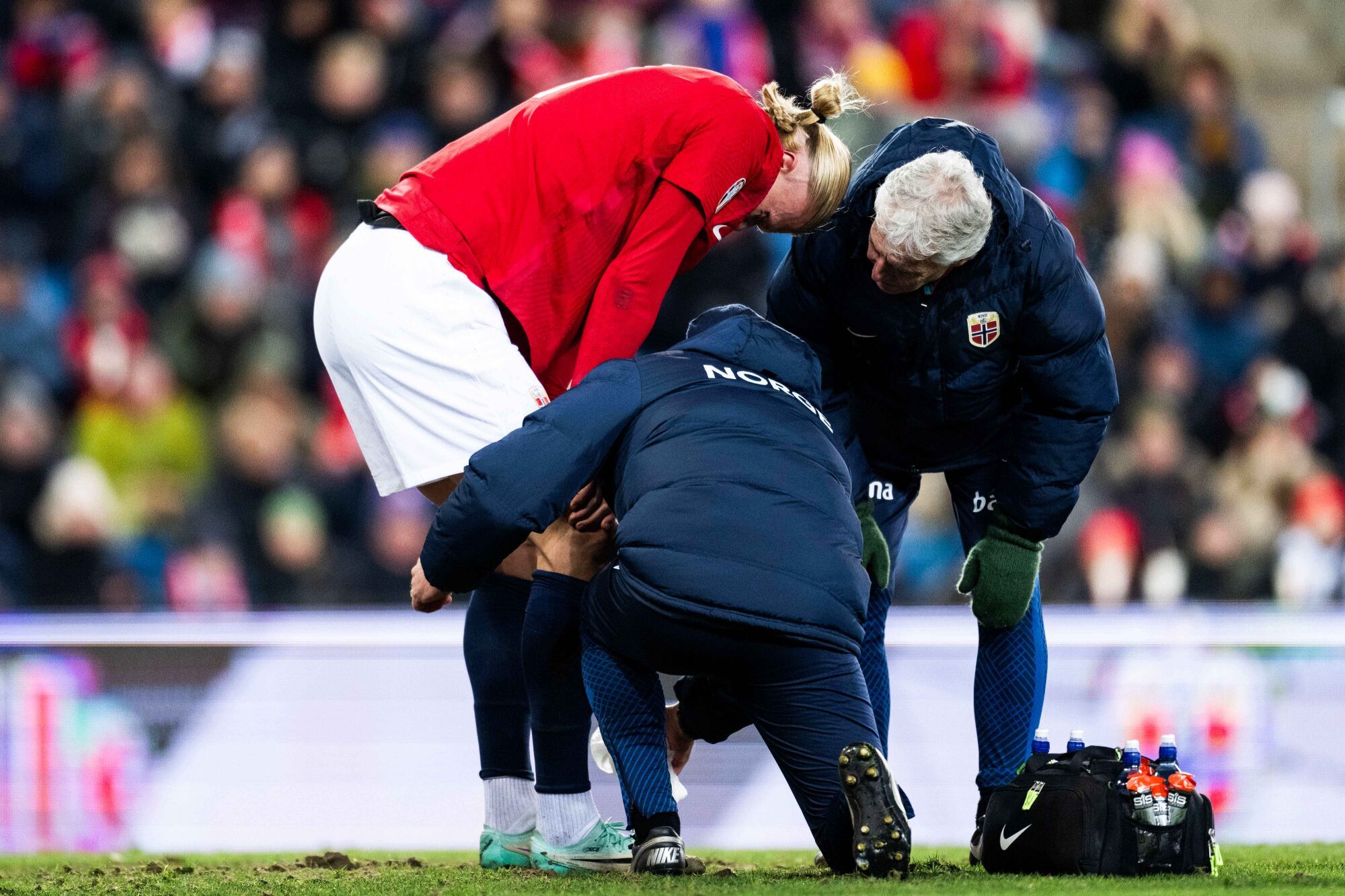 Difficile de savoir pour l’instant car si l’ancien joueur du Borussia Dortmund est resté au sol après s’est coincé le pied dans une pelouse en mauvais état, il a finalement terminé la rencontre après avoir été pris en charges les médecins de sa sélection. Interrogé par TV2 après le match, Ola Sand, le médecin des Drillos a indiqué avoir informé le club anglais de l’incident puis à préciser au sujet de l’état de santé du prolifique numéro 9 : « C’est plus ou moins ce qui lui est arrivé contre Bournemouth il y a une semaine et demie. Erling Haaland souffre d’une légère entorse de la cheville dans une zone un peu vulnérable. Cela fait très mal sur le coup mais la douleur disparaît rapidement. Nous verrons comment il se sent demain« . Ce matin, les nouvelles étaient toutefois rassurantes puisque le natif de Leeds aurait été aperçu à l’entraînement en train de participer à une séance de récupération en vu du prochain match de son équipe ce dimanche face à l’Ecosse.
