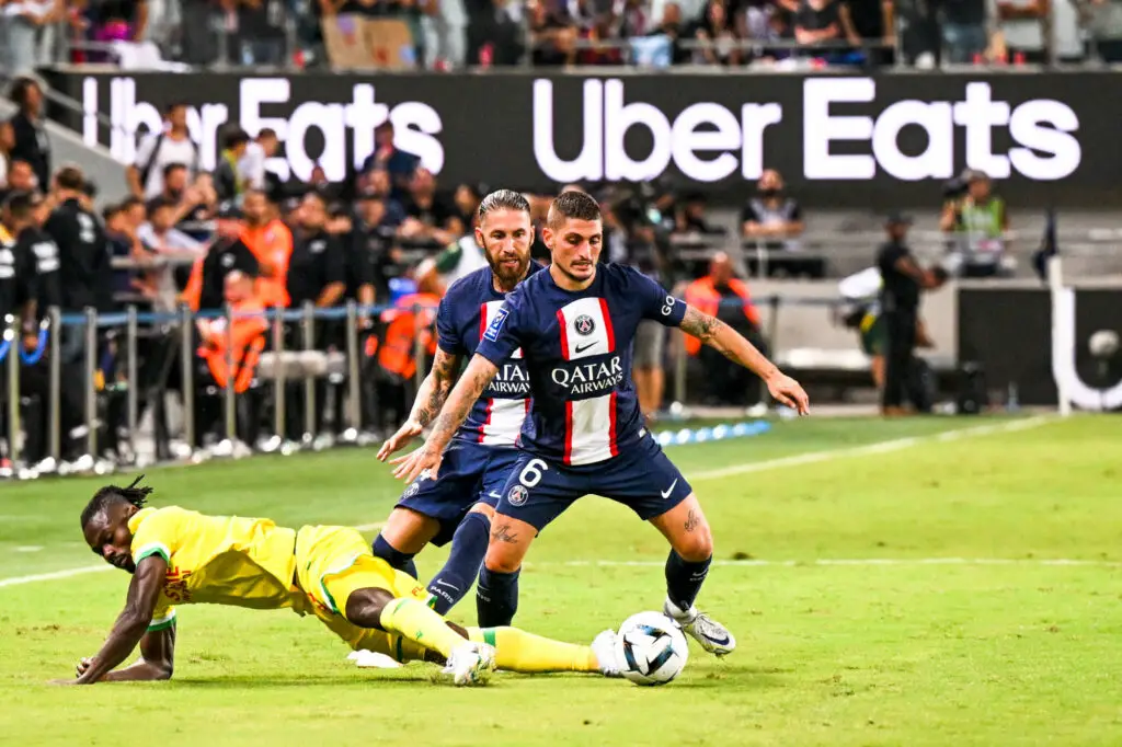 Sergio RAMOS et Marco VERRATTI (psg) au Bloomfield Stadium le 31 juillet 2022 à Tel Aviv, Israel. (Photo by Anthony Bibard/FEP/Icon Sport)