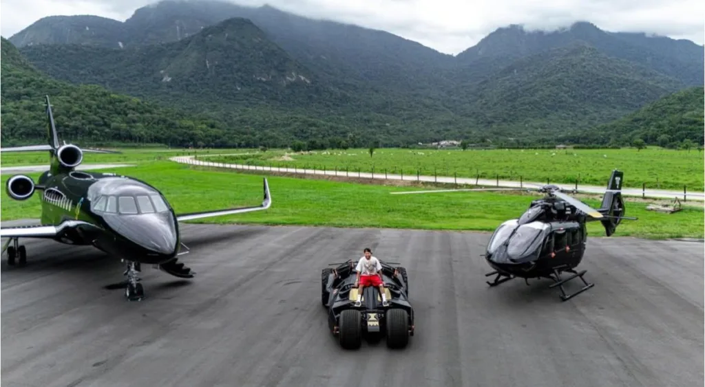Parmi les pièces les plus impressionnantes figure une réplique de la Batmobile, inspirée du véhicule utilisé par le super-héros de DC Comics dans le film The Dark Knight Rises. Cette voiture hors norme, exposée dans sa résidence, serait évaluée à environ 1,3 million d’euros et illustre le goût prononcé du Brésilien pour les objets rares et spectaculaires.
