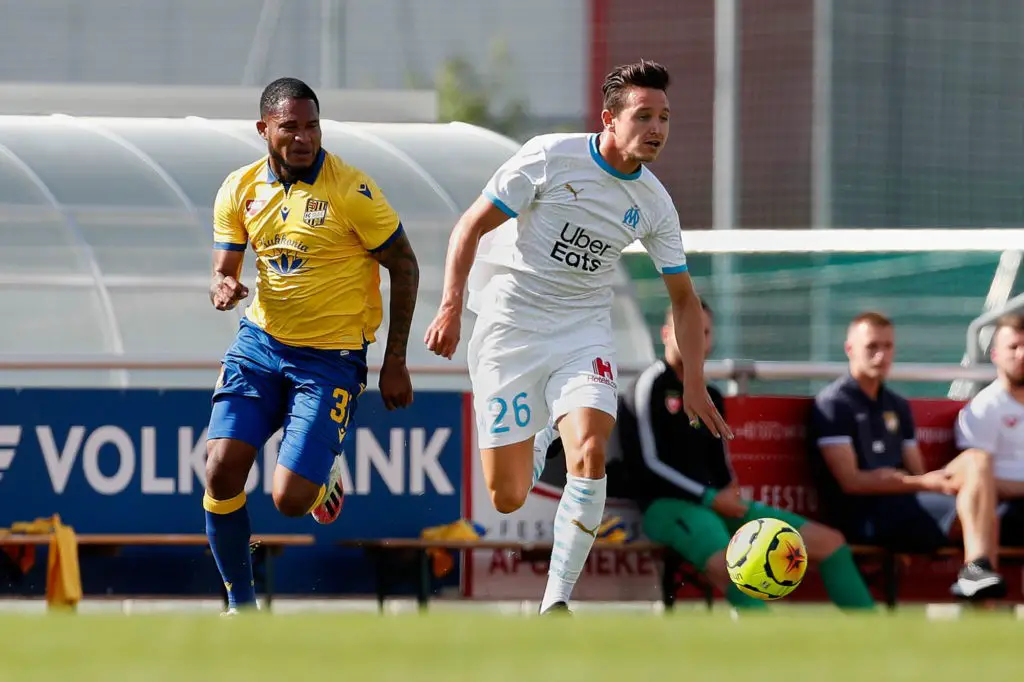Eric Javier Grajales Davis, FC DAC 1904 Dunajska Streda, Streda, Florian Thauvin, Olympique Marseille, Marseille, Olympique, OM, ganze Figur, Zweikampf,