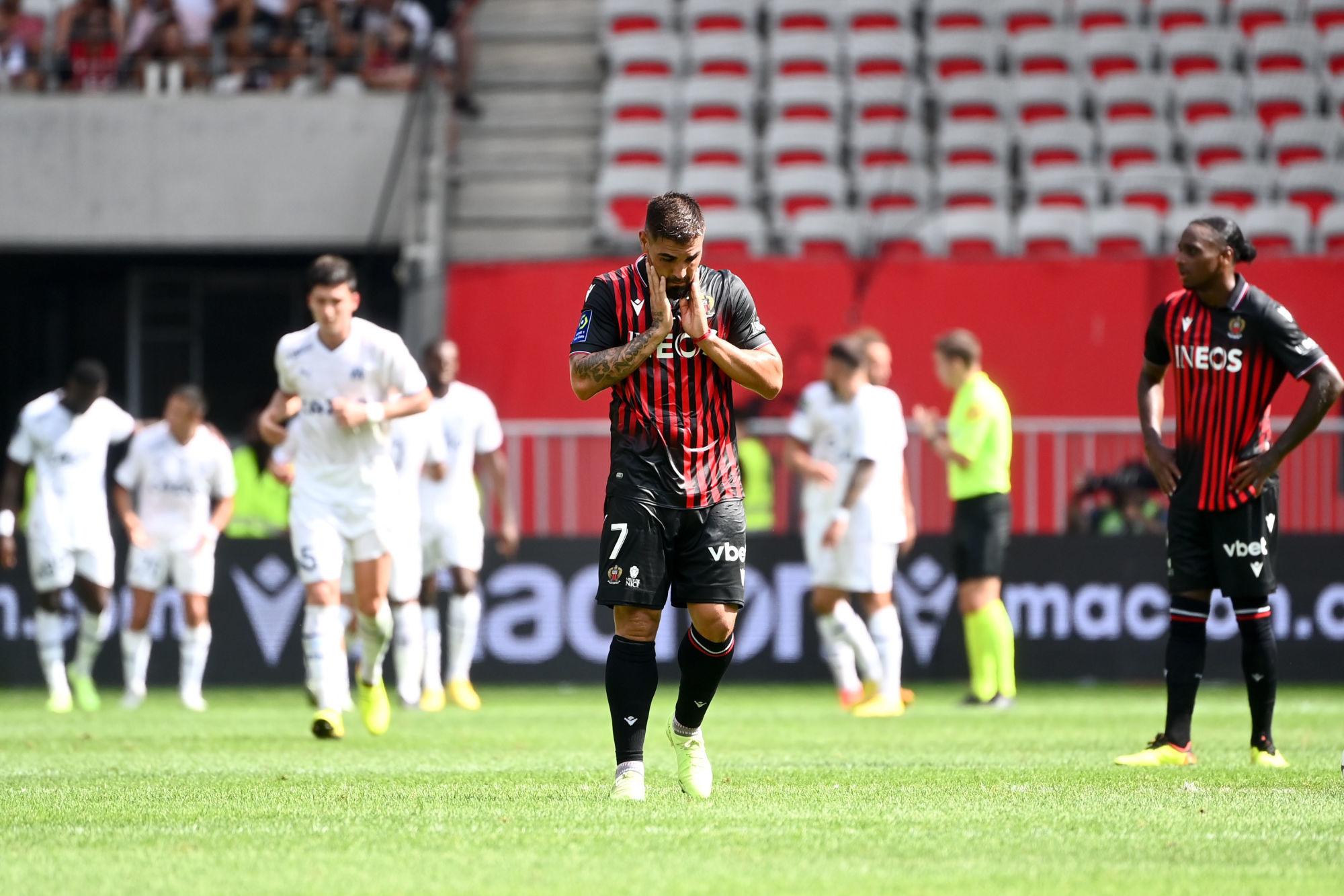 Cet après-midi, l’Olympique de Marseille était en démonstration à l’Allianz Riviera ! Les hommes d’Igor Tudor se sont imposés sur le score de 3 à 0 face à l’OGC Nice. Les coéquipiers d’Alexis Beka Beka n’ont pas su confirmer leur victoire de jeudi dernier lors des barrages de la la Ligue Europa Conférence contre le Maccabi Tel-Aviv. Après la rencontre, Andy Delort est revenu sur la défaite des siens, On l’a vu, je ne sais pas si c’est physiquement ou tactiquement, mais Marseille était au-dessus.“, a expliqué l’international algérien, “Ils méritent la victoire, il n’y a rien à dire. On a modifié quelques trucs en seconde période, c’était un peu mieux, mais pas assez. C’est allé assez vite, on a encaissé le premier but d’entrée. Après, c’est compliqué de revenir contre des équipes comme ça, qui jouent et qui se créent des occasions. 3-0 à la mi-temps, c’est sûr que ce n’était pas évident.“, a déclaré le buteur niçois. Après 4 journées de Ligue 1, l’OGC Nice est 19ème du championnat, les hommes de Lucien Favre vont devoir réagir pour ne pas sombrer. Cette semaine, Nice se déplace à Lille mercredi avant de recevoir dimanche Monaco dans un derby qui s’annonce déjà décisif, affaire à suivre…
