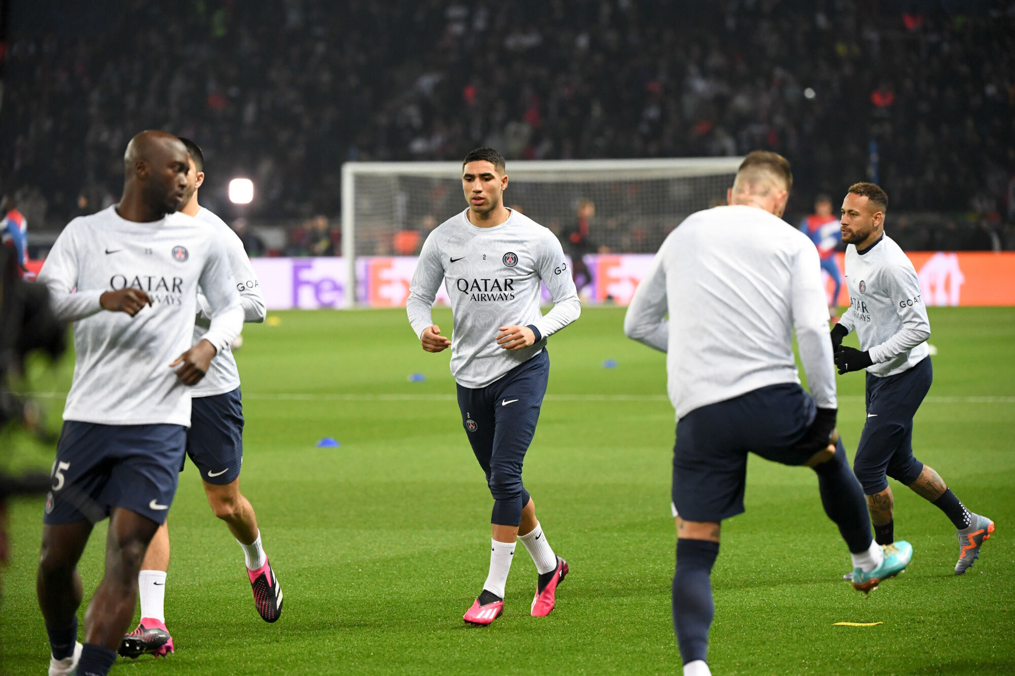 À deux jours du Classico face à l’Olympique de Marseille, les joueurs du Paris Saint-Germain s’entraînaient ce vendredi au Parc des Princes devant plus de 30 000 spectateurs. Une séance où Achraf Hakimi et Nuno Mendes ont fait leur retour dans l’effectif de Christophe Galtier. Toujours incertain pour le match de dimanche, le Marocain est rentré aux soins dès l’échauffement terminé comme le rapportent nos confrères du Parisien.