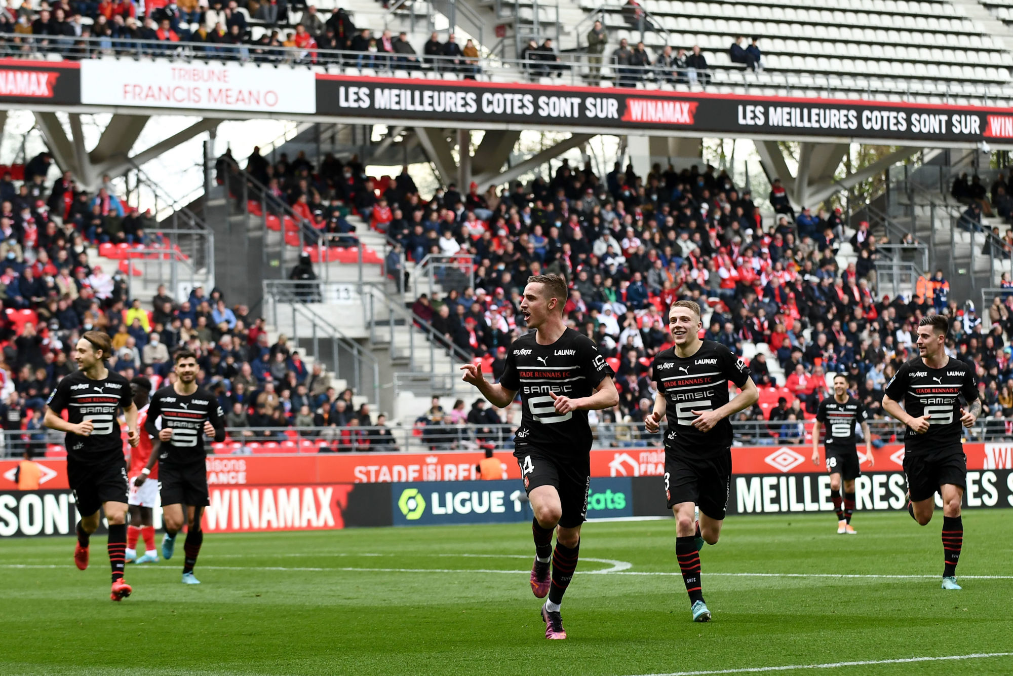 Malmenés en première période, les hommes de Bruno Génesio se sont imposés 3 à 2 face à Reims. Le Stade Rennais est pour l’instant deuxième en attendant le résultat de Marseille demain.