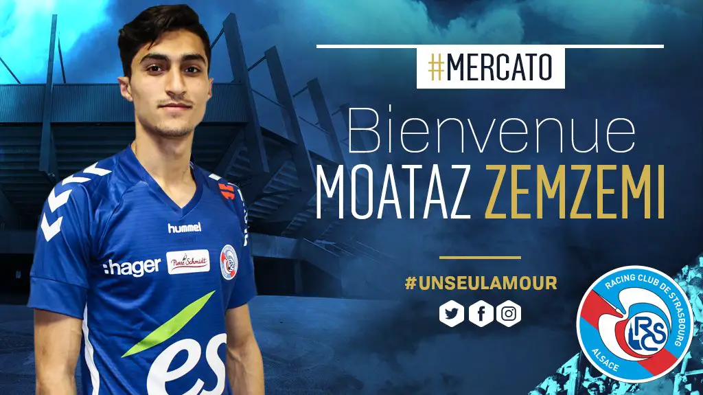 ?? Moataz #Zemzemi est Strasbourgeois ! Le joueur tunisien ?? de 18 ans qui arrive du Club Africain de Tunis s’est engagé pour trois ans et demi au Racing. Gaucher, il peut occuper plusieurs postes notamment en milieu de terrain. #BienvenueMoataz