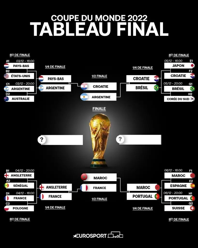 Tableau final de la Coupe du monde : Argentine-Croatie et France-Maroc en demi-finales