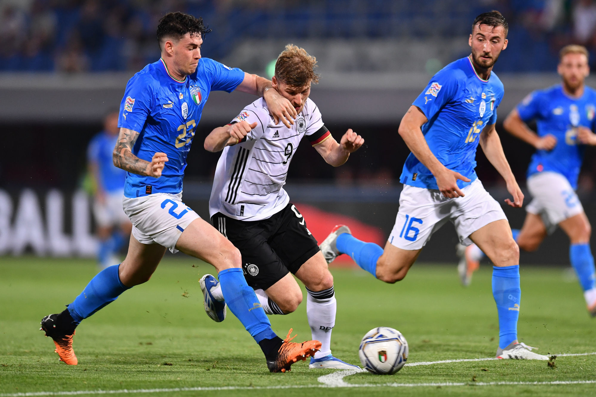 Suivez ce samedi à partir de 20 h 45, le multiplex des matchs de la première journée de la Ligue des Nations. L’Italie et l’Allemagne se séparent sur un match nul 1-1, tandis que la Turquie s’impose facilement contre les Îles Féroé.