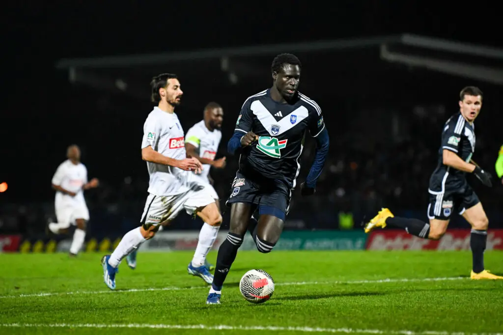 Aliou BADJI of Bordeaux during the French Cup match between Entente Sannois Saint-Gratien and Football Club des Girondins de Bordeaux at Parc des Sports Michel Hidalgo on January 6, 2024 in Saint-Gratien, France. (Photo by Daniel Derajinski/Icon Sport)