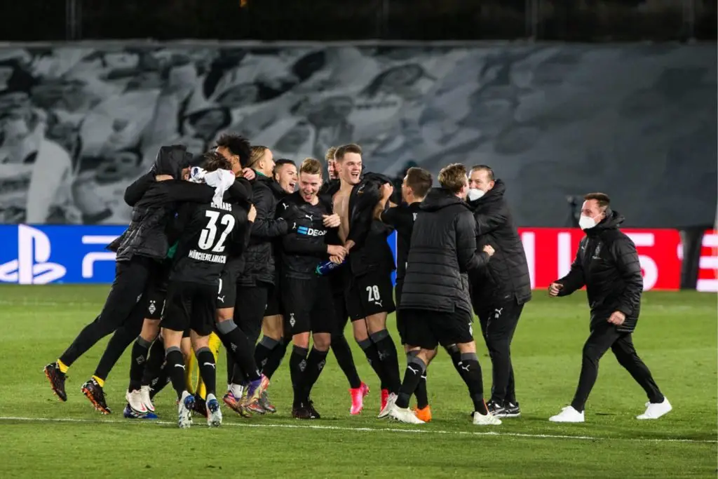Malgré leur défaite hier sur la pelouse du Real Madrid (2-0), les coéquipiers de Marcus Thuram ont réussi à s’extirper d’un groupe B ultra serré, dont le suspense est resté intact jusque dans les dernières minutes de la rencontre entre l’Inter et le Chakhtar (0-0). Un match qui dépendait directement de la survie de Mönchengladbach en Ligue des Champions, que les joueurs du club allemand ont suivi à distance à l’aide d’un petit écran. Une image aussi belle qu’insolite, riche en émotions.