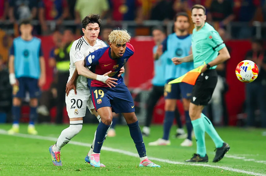 FC Barcelone : Joan Garcia – Koundé, Cubarsi, Martin, Baldé – Eric Garcia, Olmo – Yamal, Fermin, Ferran – Lewandowski.