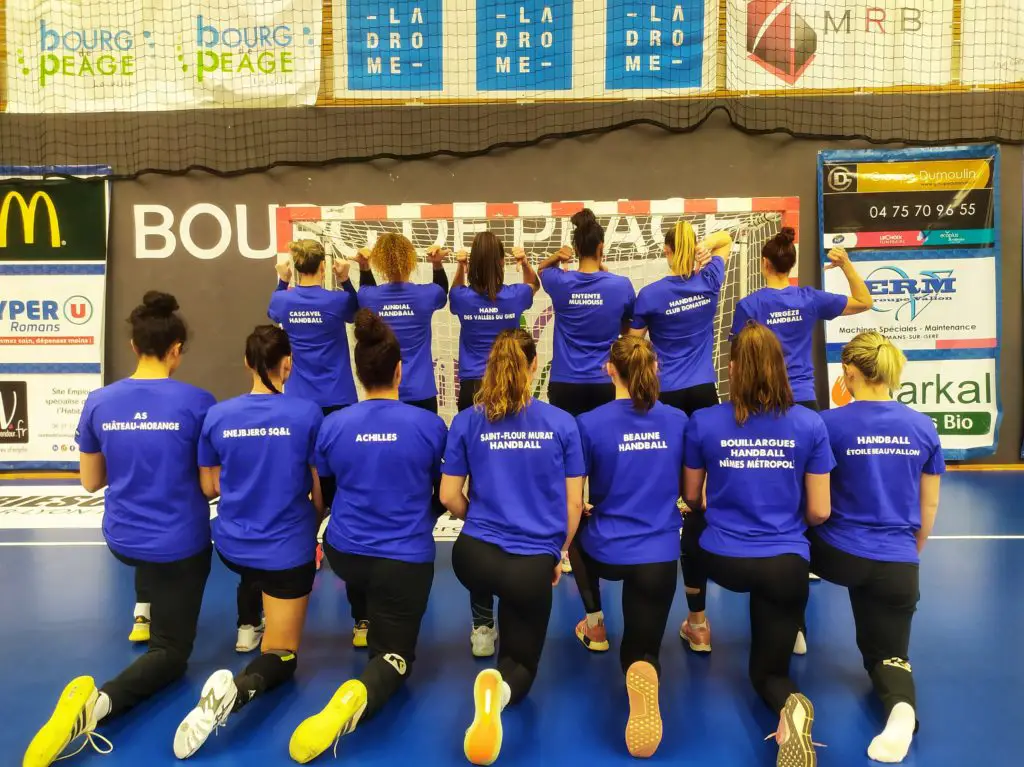 Le 5 mars dernier, la Fédération Française de Handball annonçait officiellement l’arrêt de l’ensemble des compétitions des championnats amateurs, jeune et adultes, pour cette saison en raison du contexte sanitaire. Le Bourg de Péage Drôme Handball souhaite soutenir le monde amateur. Les joueuses et les entraîneurs du Bourg de Péage Drôme Handball porteront donc un t-shirt d’échauffement pour envoyer un message de soutien à l’ensemble des clubs de handball amateur.