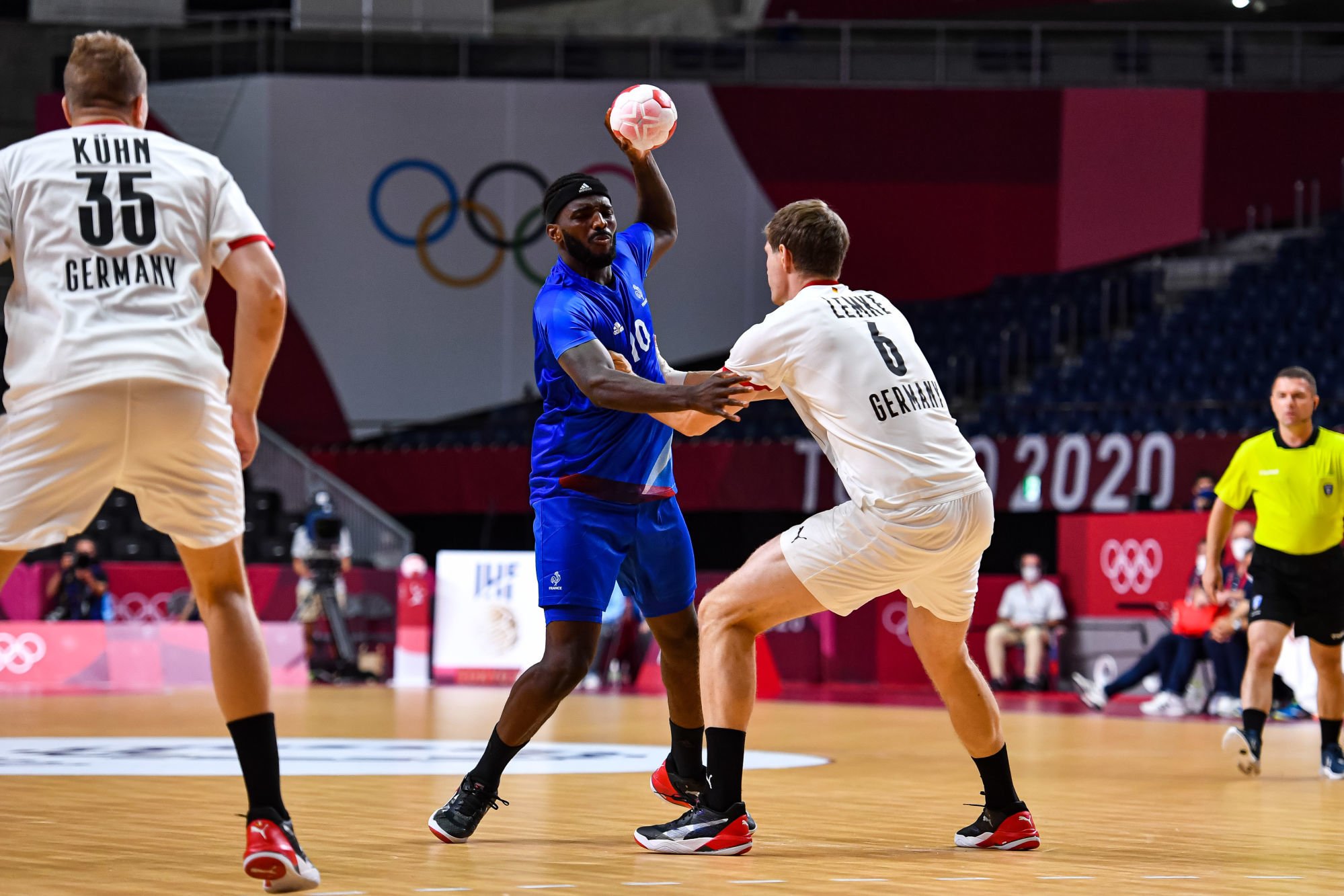 Après voir battu l’Argentine et le Brésil, les Tricolores ont dû batailler ce mercredi pour poursuivre leur sans-faute. Face à une belle équipe allemande, médaillée de bronze en 2016, les Français se sont imposé sur le fil, 30 à 29. Après un premier acte solide, les Bleus se sont fait peur en seconde période mais sont parvenus à aller chercher cette victoire importante. Dika Mem et ses six buts termine meilleur buteur français.