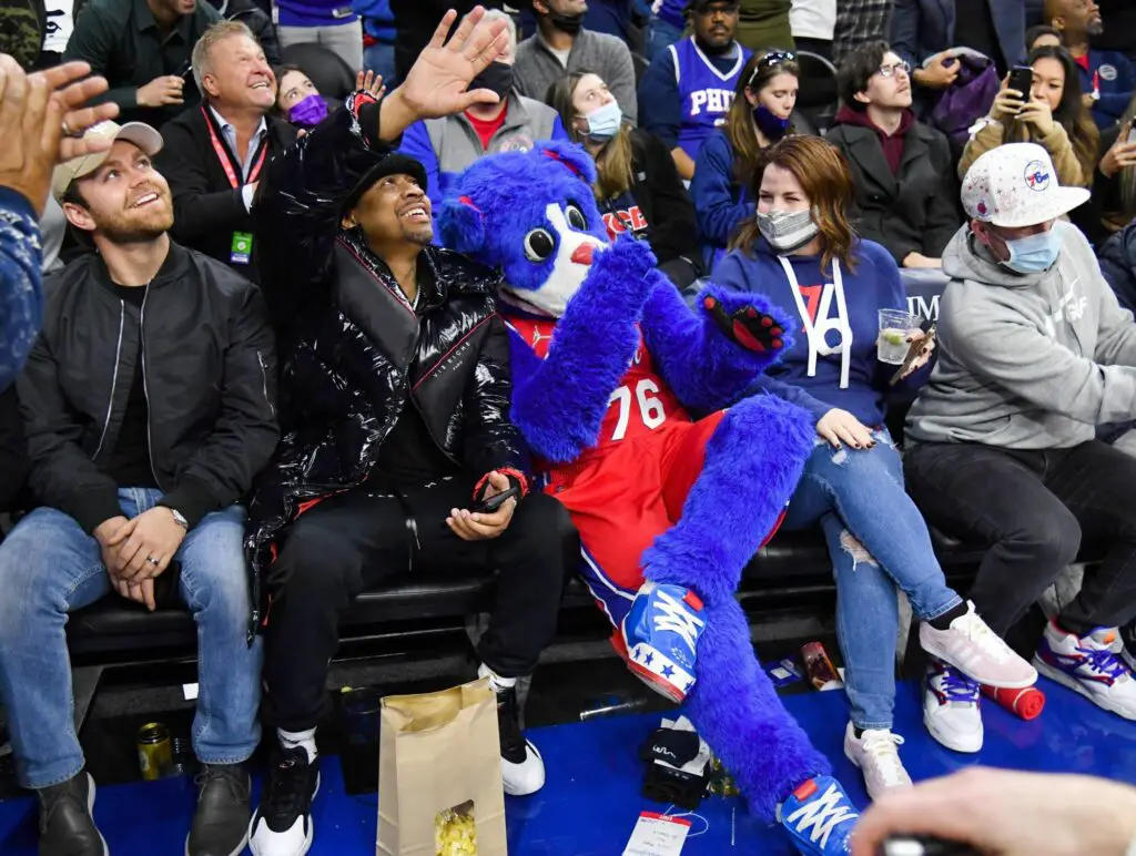Feb 8, 2022; Philadelphia, Pennsylvania, USA; Former Philadelphia 76ers great Allen Iverson during the second quarter at Wells Fargo Center. Mandatory Credit: Eric Hartline-USA TODAY Sports/Sipa USA - Photo by Icon sport