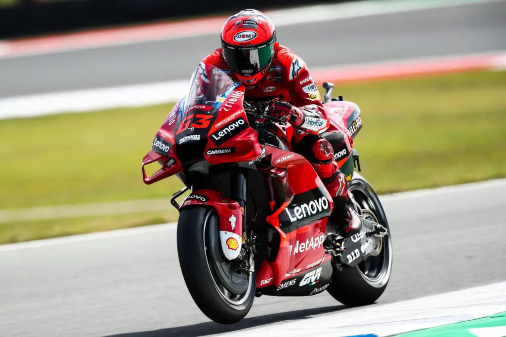 Pourtant parti de la neuvième position, Bagnaia a fait une énorme remontant pour finalement remporter le GP. Grâce à ce résultat, il accroit son avance au classement des pilotes à 23 points devant Quartararo.