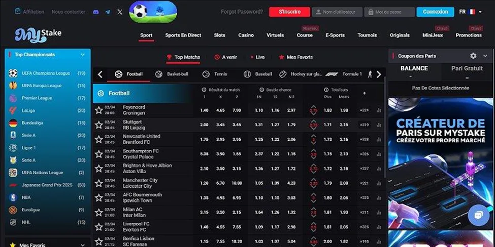 MyStake propose également une offre sportive étendue, avec plus de 40 disciplines couvertes, allant des sports traditionnels comme le football, le tennis ou le basketball à des options plus atypiques comme le sumo, le floorball ou le stock-car.
