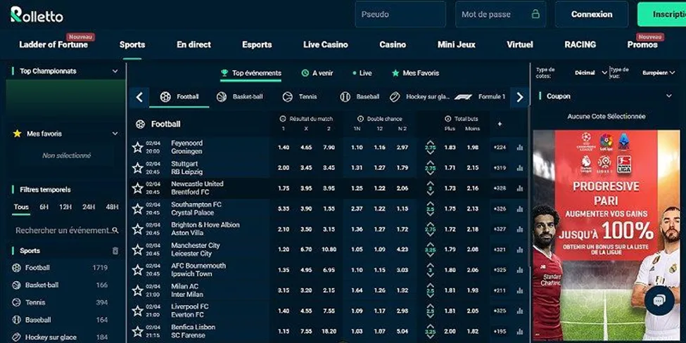 Rolletto – site de paris sportifs avec un bonus de 1 500 €