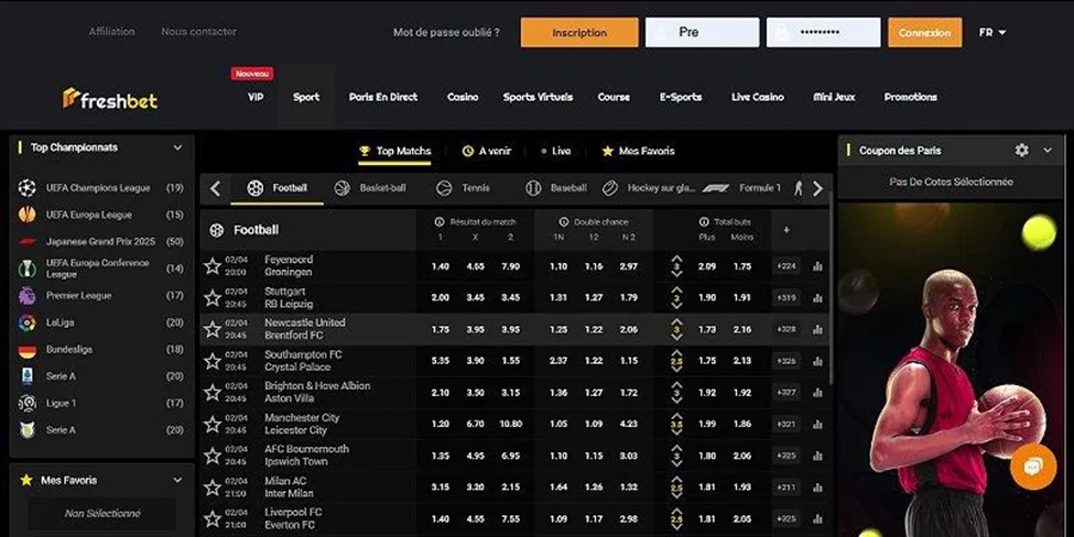 Freshbet : idéal pour ceux qui cherchent des fonctionnalités avancées (cash-out, edit bet, streaming) et des cotes souvent compétitives, avec un bonus jusqu’à 500 €.