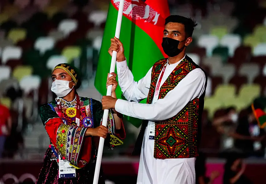 Les athlètes afghans sélectionnés pour les Jeux de Paris, dont deux des hommes et les trois femmes vivent à l’étranger, participeront sous les couleurs de l’ancien drapeau national, noir, vert et rouge. Seul un judoka, résidant en Afghanistan, représentera le pays sur place. Malgré la gestion de la participation des hommes par le Comité olympique afghan collaborant avec les talibans, ces derniers ont imposé des restrictions strictes sur les activités sportives et l’éducation des femmes depuis leur retour au pouvoir en 2021, une politique fortement critiquée par les Nations Unies comme constituant un « apartheid de genre« .