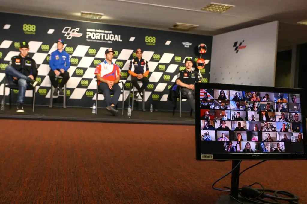 Miguel Oliveira, Fabio Quartararo, Joan Mir, Johann Zarco, Marc Marquez, Maverick Vinales, media, MotoGP, Portuguese MotoGP 15 April 2021 Photo by Icon Sport - Marc MARQUEZ - Maverick VINALES - Johann ZARCO - Fabio QUARTARARO - Joan MIR - Portimao (Portugal)