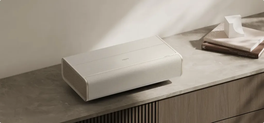 Dès le déballage, l’élégance de ce vidéoprojecteur laser UST (ultra courte focale) frappe immédiatement. Son design sobre mais raffiné, mêlant tissu clair et aluminium brossé, lui permet de se fondre dans n’importe quel salon, sans ressembler à un appareil électronique imposant. À l’instar des meilleures tenues de match des équipes de la Coupe du Monde 2026 qui approche à grands pas, le Aura 2 combine style et performance, offrant un spectacle visuel dès le premier regard.
