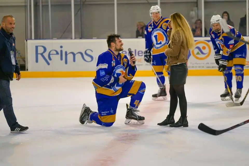 Quel compte de fée ! Jakub Matejka, attaquant slovaque à Reims, a redoublé d’imagination pour surprendre sa -future- femme. Après un match face à Dijon (remporté 7-2) en Division 3 de hockey sur glace français, le jeune homme a pris le micro, a appelé sa compagne à le rejoindre sur la glace. C’est là qu’il a posé le genoux à terre et qui lui a demandé sa main. Et devinez quoi ? Elle a dit oui !