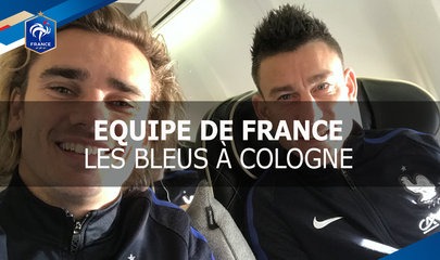 A la veille du match de préparation à la Coupe du Monde 2018 face à l’Allemagne, l’Equipe de France de Didier Deschamps a quitté son camp de base à Clairefontaine (Yvelines) pour s’installer à Cologne. Auteur : ffftv