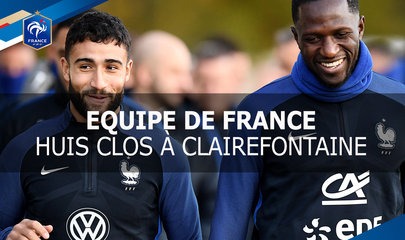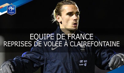 Les premières minutes de la séance à huis clos des Bleus mercredi sur le terrain Michel Platini à Clairefontaine. Les hommes de Didier Deschamps affronteront le pays de Galles vendredi au Stade de France (21h, TF1). Auteur : ffftv