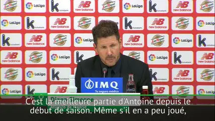 Diego Simeone a apprécié la prestation d’Antoine Griezmann, vainqueur avec l’Atlético à Bilbao (1-2). Passeur décisif sur le but de Carrasco, Griezmann a joué selon le coach argentin »son meilleur match depuis le début de la saison ».