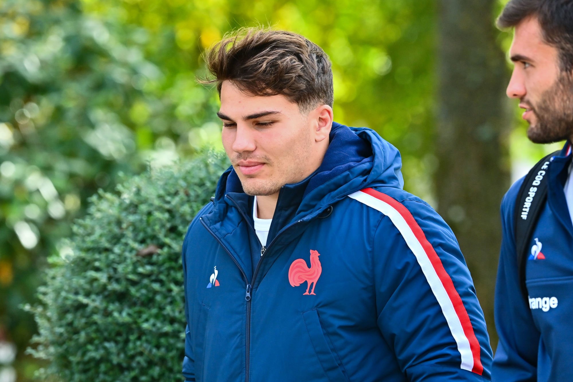 Antoine Dupont n’a pas prit par à la séance du jour à Marcoussis. Le demi de mêlée du Stade Toulousain souffre d’une contusion au mollet.