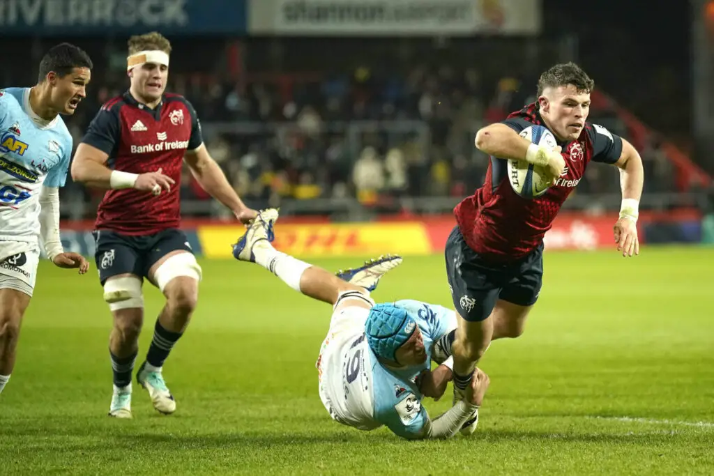 Malgré un Munster, champion en titre de la dernière United Rugby Championship, qui n’a pas réussi à prendre l’ascendant sur les Basques indisciplinés mais accrocheurs, ces derniers ont maintenu leur élan. Malgré une bonne entame avec une pénalité de Maxime Machenaud (5e), le Munster a répondu avec son expérience et des combinaisons bien orchestrées menant à des essais de Shay McCarthy (10e) et Gavin Coombes (20e).