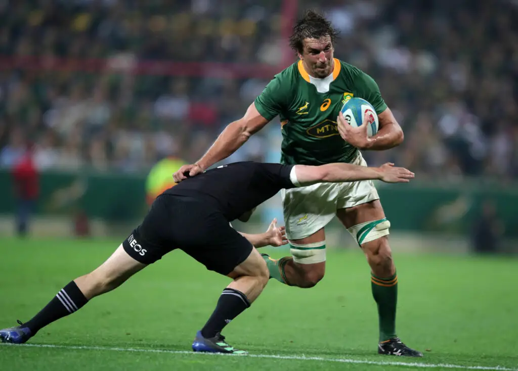 Willemse – Kriel, Am, de Allende, Mapimpi – (o) Pollard, (m) Hendrikse – du Toit, Vermeulen, Kolisi (cap) – de Jager, Etzebeth – Malherbe, Dweba, Nche