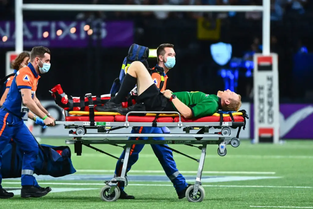 Tual Trainini, arbitre de la rencontre de Top 14 entre le Racing 92 et La Rochelle, s’est blessé à la cheville droite à la 71e minute de jeu et n’a pas pu terminer d’arbitrer la rencontre.