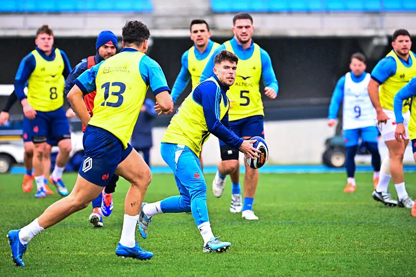 Lors de l’entraînement de lundi à Marcoussis, Jalibert a été aligné avec les titulaires et a formé la charnière avec Antoine Dupont. Ce choix du sélectionneur Fabien Galthié laisse présager qu’il pourrait débuter en l’absence probable de Romain Ntamack, qui devrait manquer à l’appel en raison de son expulsion lors du match contre le Pays de Galles.