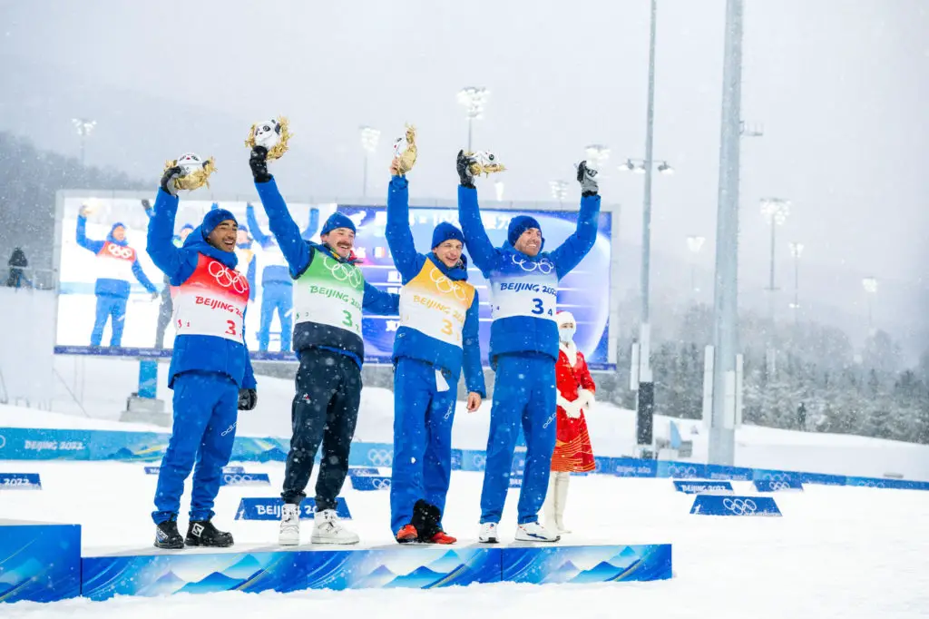 Chez les Bleus, la mission est accomplie ! Déjà doublement médaillés de bronze aux JO de Sotchi (2014) et Pyeongchang (2018), le relais français composé de Richard Jouve, Hugo Lapalus, Clément Parisse et Maurice Manificat a renouvelé l’expérience, ce dimanche, aux Jeux de Pékin, offrant ainsi sa 9e médaille à la France.