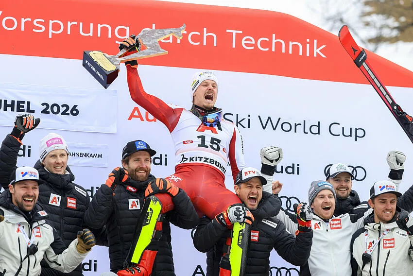 Manuel Feller a signé sa première victoire de la saison ce dimanche en slalom à Kitzbühel. L’Autrichien devance le Suisse Loïc Meillard de 0 »35 et l’Allemand Linus Strasser de 0 »53, offrant un vrai spectacle à son public, selon SkiChrono.
