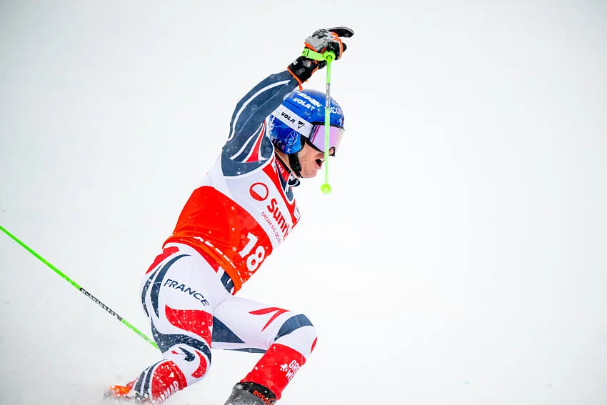 Sous une neige épaisse et piégeuse, le Haut-Savoyard de 27 ans s’est montré agressif de haut en bas du tracé, ne cédant que 68 centièmes au maître du lieu. Cette troisième place lui offre le deuxième podium de sa carrière en Coupe du monde, après sa deuxième place à Alta Badia fin 2024.