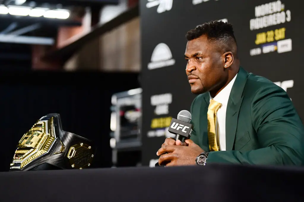Même si la rééducation de son genoux et que son retour dans la cage devrait se faire dans un choc titanesque contre Jon Jones début 2023, Francis Ngannou n’a pas digéré toutes les galères contractuelles que Dana White lui a fait subir. Pour ceux du fond qui n’ont pas suivi, on vous rappelle que l’homme à la patate la plus puissante du monde souhaitait une prolongation de son contrat ainsi qu’une grosse augmentation de son salaire, un sujet longtemps resté tabou dans les bureaux de l’UFC. Même si la tendance semble s’être améliorée, Ngannou continue d’envoyer des tacles. Il avoue s’être senti piégé par Dana White qui aurait eu plan pour le balancer aux oubliettes après son combat contre Cyril Gane.