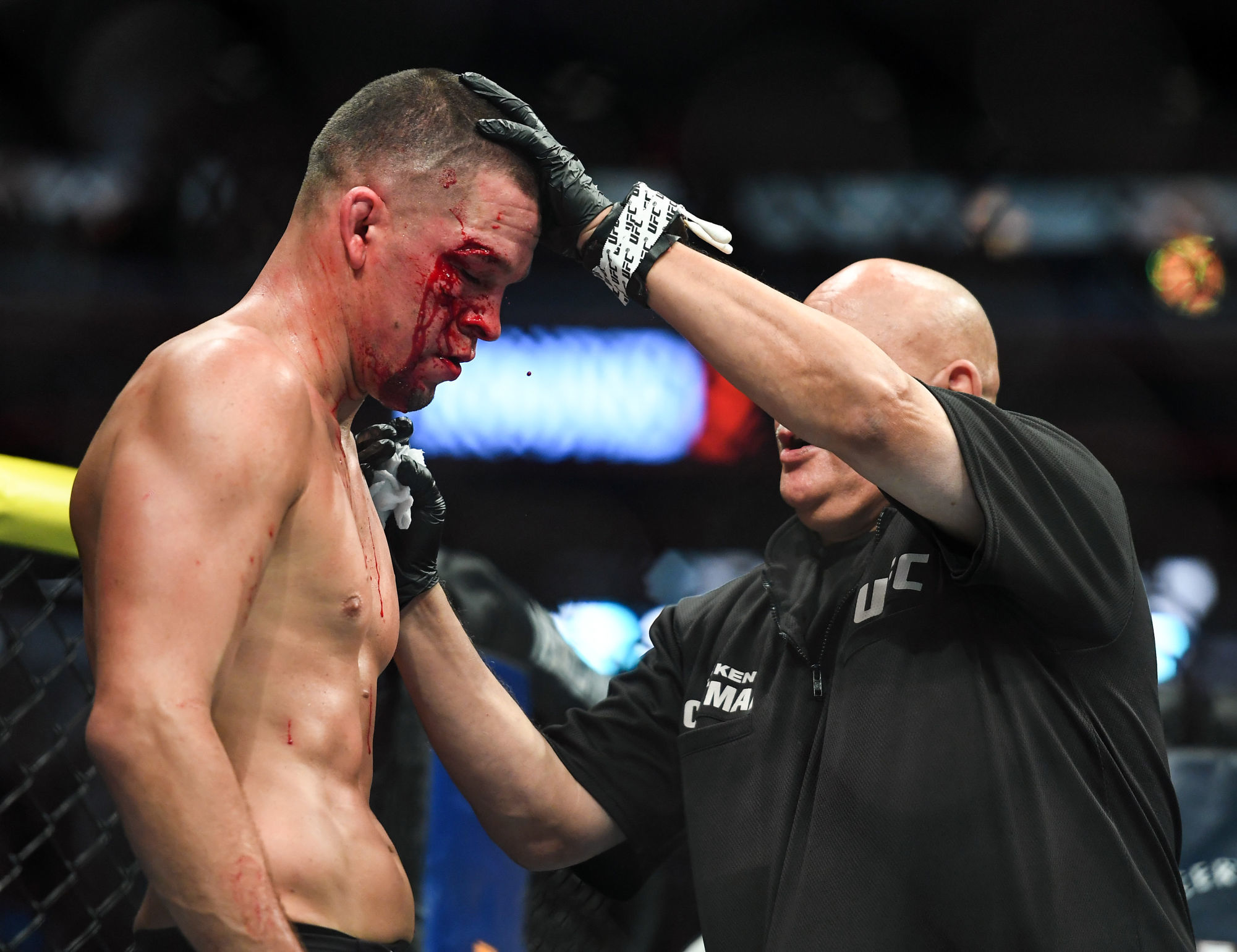 Nate Diaz affrontait Jorge Masdival samedi soir au Madison Square Garden de New York dans un combat pour la ceinture du “Baddest Motherfucker”. Au bout d’à peine quatre rounds, Nate Diaz a dû jeter l’éponge sur décision médicale. Un choix qui semble logique face aux images de la terrible blessure du Californien, mais qui n’est visiblement pas passé auprès des fans d’UFC.