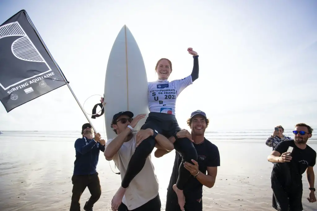 La surfeuse de Lacanau Juliette Brice qui faisait son retour après 4 ans d’absence, s’est vue remporté pour la première fois le championnat de France en début de semaine. « Je suis contente d’avoir gagné, je ne m’y attendais pas du tout. Ça me fait super plaisir ! Pour moi, Maud (Le Car, troisième et championne de France en titre) était intouchable et si j’avais dû viser une place, c’était vice-championne. »