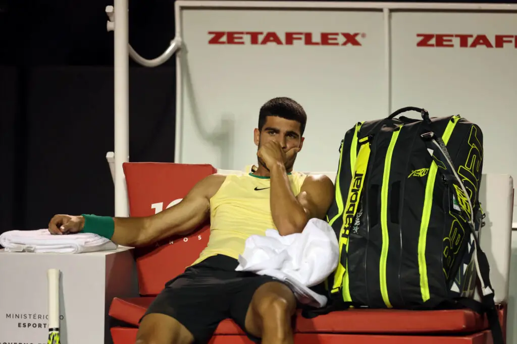 Pendant le premier tour du tournoi de Rio contre Thiago Monteiro, Alcaraz a sollicité un temps mort médical alors que le score était de 1-0 en faveur de son adversaire, et il a dû se faire bander la cheville droite. Malgré avoir repris le jeu, remporté son service pour égaliser à 1-1, il a finalement pris la décision d’abandonner. L’année 2024 débute difficilement pour Alcaraz, avec son élimination en quart de finale de l’Open d’Australie en janvier et en demi-finale du tournoi sur terre de Buenos Aires la semaine dernière, où il défendait son titre.