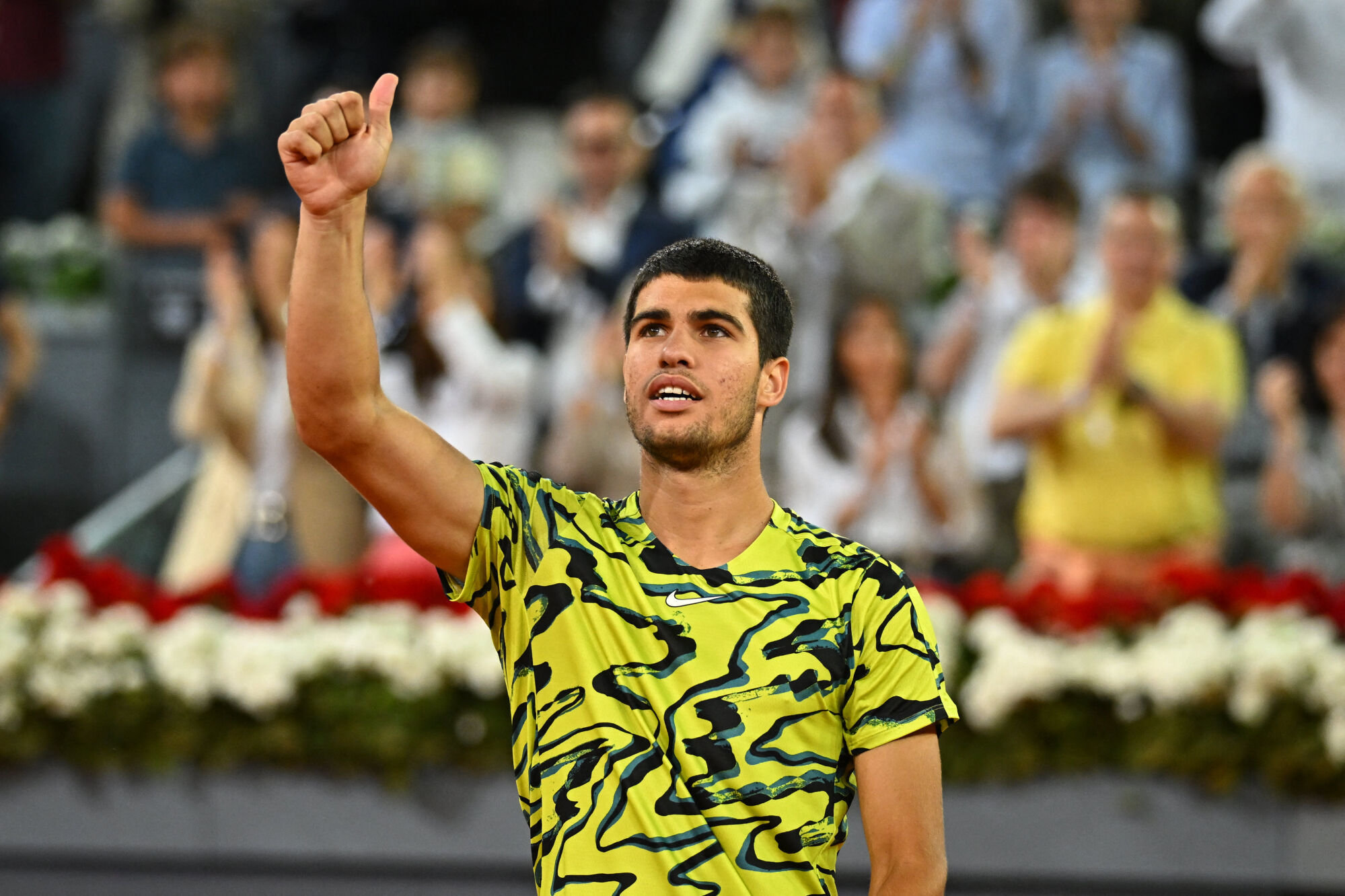 Comme il l’a fait à Barcelone, Carlos Alcaraz compte bien à nouveau défendre son titre à Madrid. Pour ses retrouvailles avec Alexander Zverev, moins d’un an après leur quart de finale à Roland Garros remporté par l’Allemand, le numéro 2 mondial avait une faim débordante de revanche. L’Espagnol a filé vers la victoire tel un TGV, ne laissant aucune chance à Zverev sur ses jeux de retour et de service. 13 coups gagnants, 4 petites fautes directes et aucune balle de break concédée, Alcaraz a livré une copie parfaite (6-1, 6-2) pour balayer un Zverev qui manquait de jus, et qui recherche encore son niveau qui était le sien avant sa longue blessure.