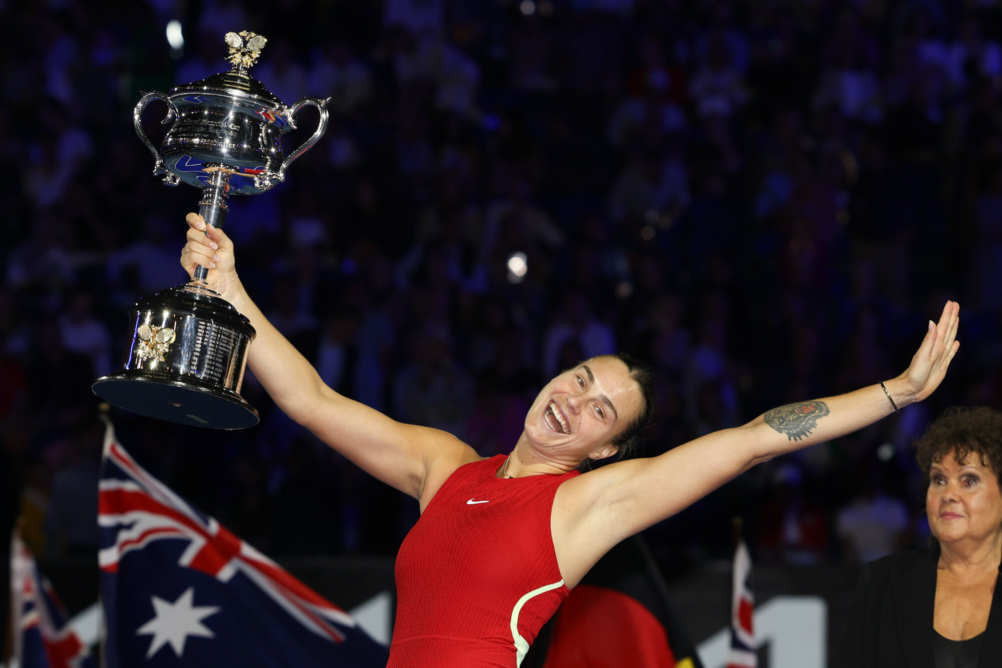 Aryna Sabalenka, n°2 mondiale et tenante du titre, a été sacrée à l’Open d’Australie pour la deuxième fois d’affilée en submergeant en puissance la Chinoise Zheng Qinwen (n°15), 6-3, 6-2 en 1h16 min samedi. La Bélarusse de 25 ans a conquis son deuxième titre en Grand Chelem sans perdre le moindre set tout au long de la quinzaine australienne.