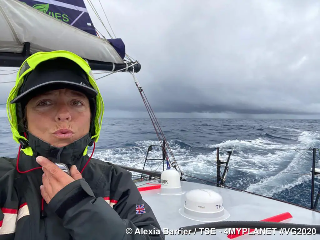 A retenir ce jeudi : Louis Burton, le plus à l’Ouest du groupe de tête, pourrait profiter d’un couloir de vent pour creuser l’écart. Moins de 160 milles séparent les six premiers de la flotte. Kojiro Shiraishi vient de passer le point le plus loin de son pays natal, le Japon. Alexia Barrier (photo) devrait franchir le Cap Horn ce week-end.