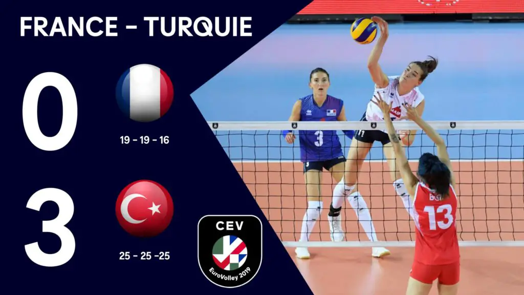 L’Euro de volley-ball est terminé pour les Françaises, éliminées après avoir été battues 3 sets à 0 par la Turquie, un des pays organisateurs, mercredi à Ankara.